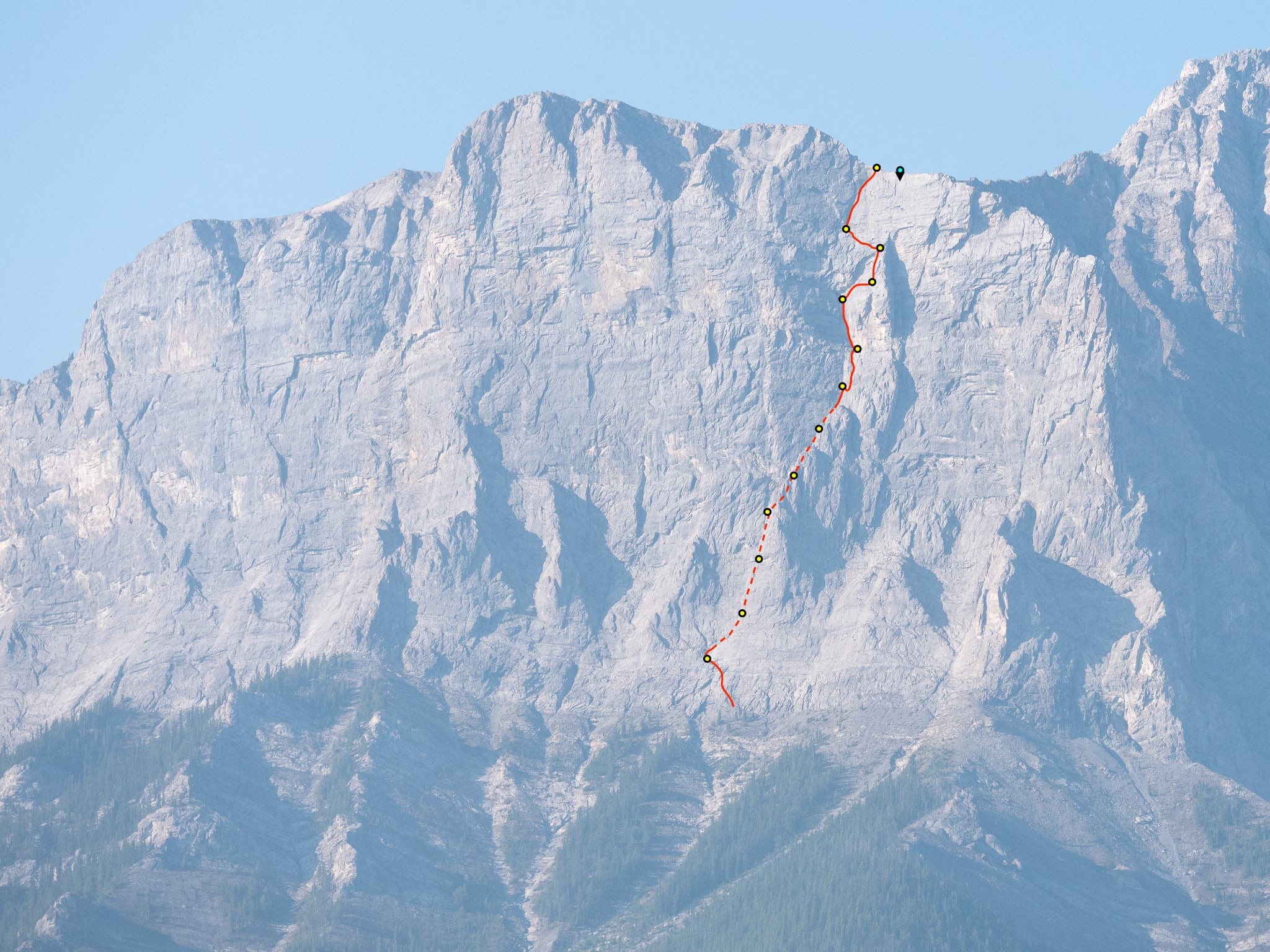 As of 2025 there isn’t a bolted anchor at the top of p12 or 13 because of the bent drill bit, some anchors only have 1 ring at the time being backed up by 2nd bolt. The route can seep so give a full day to dry.